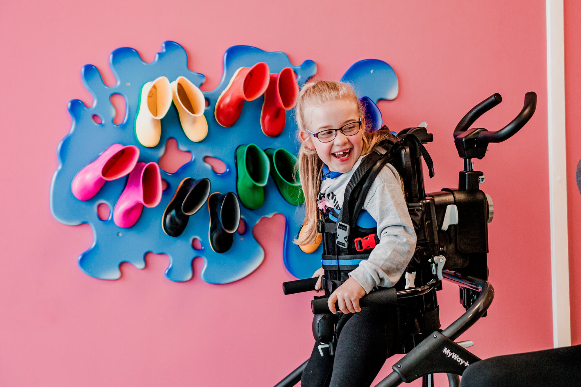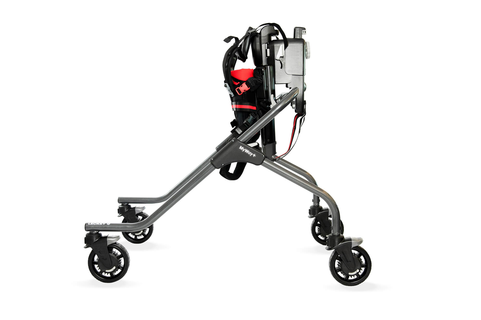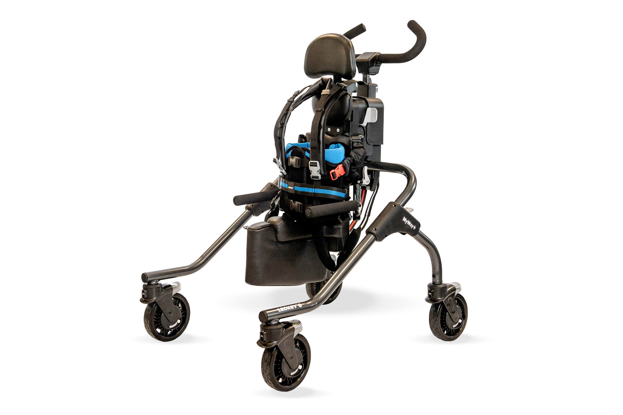 MyWay+ Pedál je revoluční trenažér, který se připevňuje na MyWay+ velikosti 2 a 3. Na rozdíl od jízdy na kole, která vede k ohnuté poloze vsedě, se šlapání ve vzpřímené poloze se zátěží zaměřuje na antigravitační svaly (lýtka, kvadricepsy a hýžďové svaly) a posiluje je.
